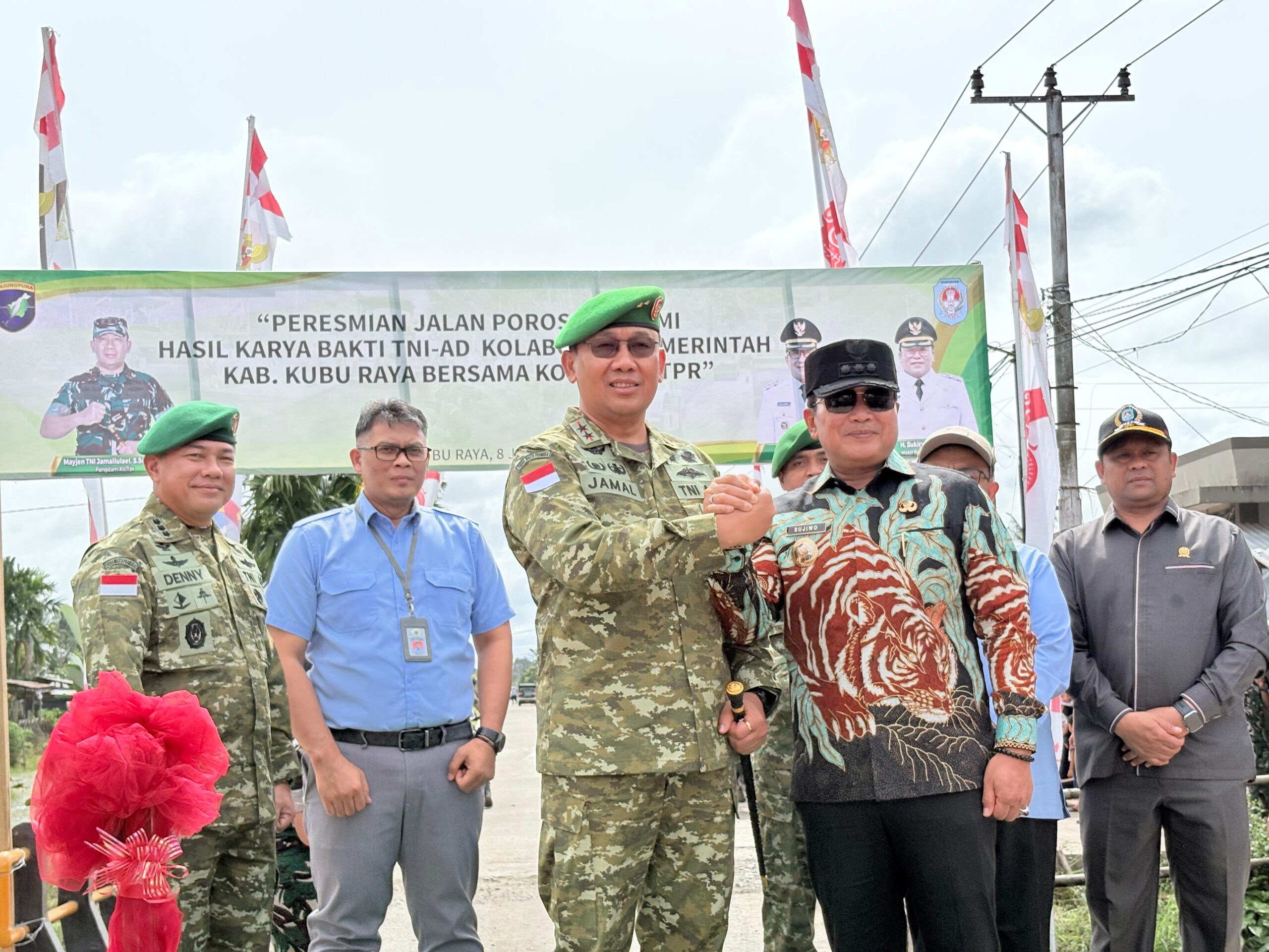 KUBU RAYA – Pembangunan Jalan Poros Ekonomi Rasau Jaya 2, hasil kolaborasi Pemerintah Kabupaten Kubu Raya dan Kodam XII/Tanjungpura, resmi diresmikan. Pembangunan jalan tersebut dilaksanakan melalui program Karya Bakti TNI Angkatan Darat sebagai upaya percepatan pembangunan infrastruktur strategis di daerah.
